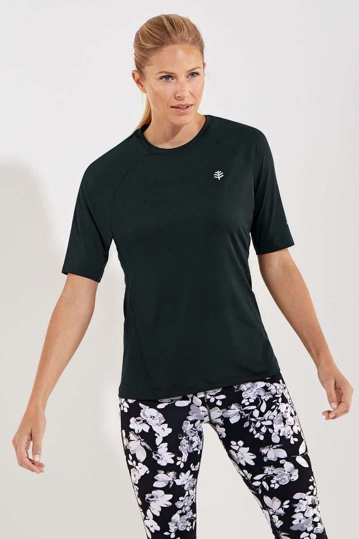 • Coolibar logo on upper back, UPF 50+ logo on left sleeve