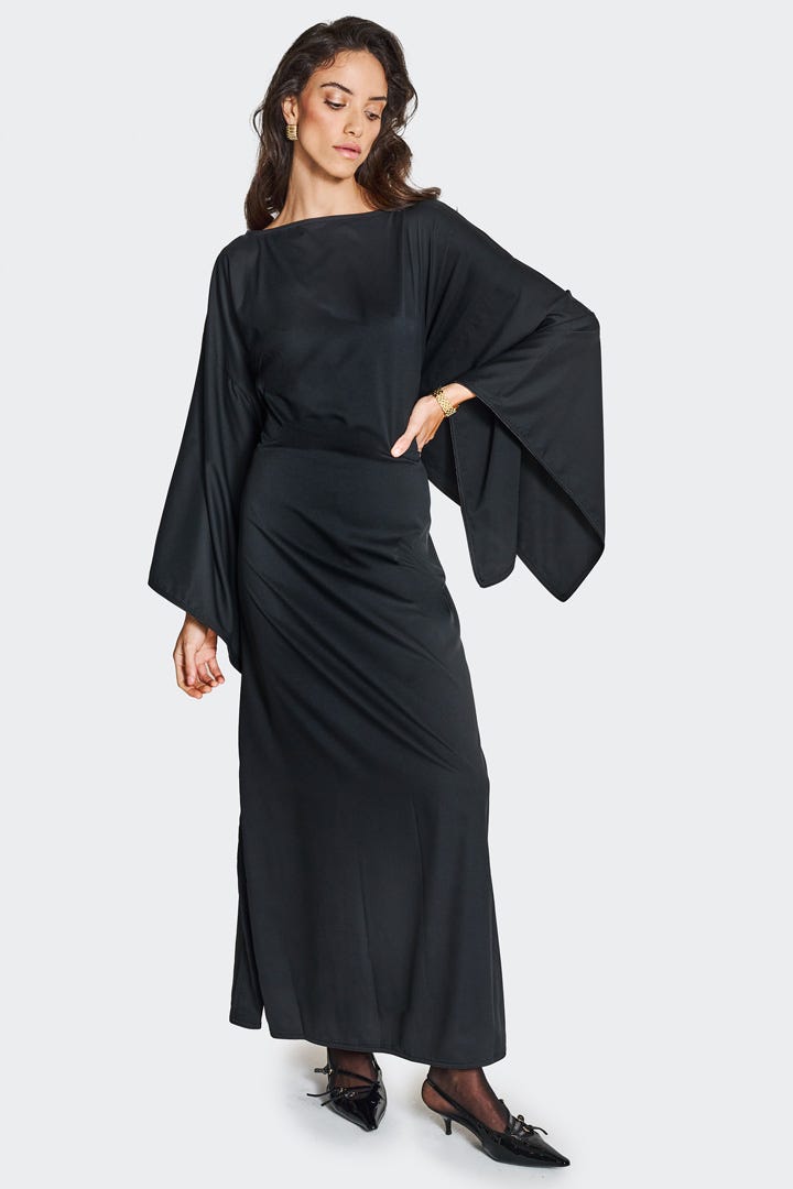 - Split kimono sleeves allow you to tie the sleeve for a sleek, boho-chic look.